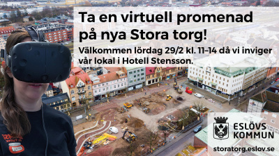 Nu öppnar vi en lokal i Hotell Stensson för att under våren berätta mer om utvecklingen av Eslövs centrum och ombyggnaden av Stora torg. Välkommen på premiären lördagen den 29 februari kl. 11–14. Då finns våra kommunalråd på plats och det finns möjlighet att ta en virtuell promenad på Stora torg.